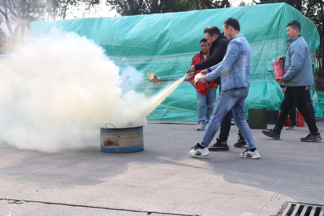 为了使理论知识更加生动直观,此次还安排了实践操作环节,邀请部分员工轮流上场进行灭火演练。现场多名员工表现出极大的参与热情,纷纷上场“一显身手”。过程中,义务消防员们细心地观察并耐心纠正每位参与者的技术动作,确保每一位员工都能精准掌握正确的灭火器操作步骤。